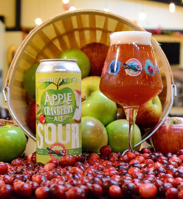 Our Apple Cranberry Ale is kettle Soured with a combination of 1350 pounds of Apples and 450 pounds of cranberries.
